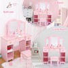 - 【Multifunctional Fun】The tri-fold mirror of the girls vanity set with mirror allows kids to check their cute looks from every angle, while multiple drawers and compartments keep makeup, accessories, and belongings organized and accessible.