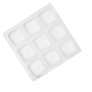 Square-shaped silicone mold perfect for creating tarts, melts, or DIY soaps in classic cube shapes.