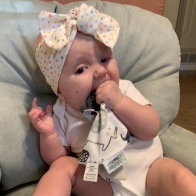 This is such a cute blanket and teether! The blanket is super soft and has a little loop to hook to a pacifier clip