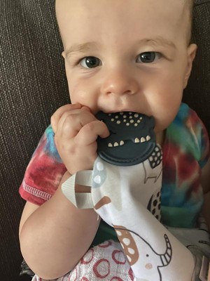The silicone part of this teether is a little too soft for my kiddo, who really likes to bite down hard. However, he LOVES the blanket. It's super soft and absorbs a lot of spit. He basically tries to shove the entire blanket into his mouth. It's easy to throw in the laundry, but I do worry that if I don't launder it after every use that it will get moldy, so I make sure it gets cleaned pretty often. Hopefully it'll hold up to all the washing!