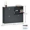 This durable shoe cabinet is crafted from waterproof, high-quality MDF for long-lasting performance and easy maintenance. Its flip-top drawers keep shoes dust-free and protected, while the versatile two-tier drawers feature removable/adjustable dividers to fit everything from flats to boots. The spacious top platform offers extra storage for daily essentials. Designed for easy assembly with labeled parts and clear instructions, the cabinet also includes an anti-tip kit for secure wall mounting, ensuring safety in homes with children or pets.