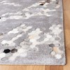 This rug's pattern, as seen in the image, draws the eye with an abstract, scattered design of hexagonal shapes, giving a contemporary edge to a timeless color palette. The versatile grey backdrop is peppered with ivory and black accents, ensuring that this rug can harmoniously blend with a wide range of decor styles while still making a statement.