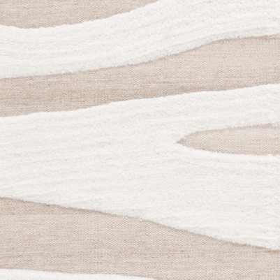 The rug showcases a captivating pattern of organic, undulating stripes in serene shades of ivory and beige. This soothing design effortlessly complements a variety of decor themes, while the neutral hues lend themselves to a tranquil atmosphere, inviting a sense of calm and warmth to the environment.