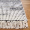 Intricately hand-woven using superior wool, this rug reveals a harmonious blend of contemporary style and traditional technique. A durable cotton cloth backing adds to its sturdy build, ensuring longevity and ease of care. The ivory and navy hues entwine to create a sophisticated pattern that effortlessly complements any modern home decor, while the wool's natural fibers offer warmth, resilience, and an eco-friendly option for conscientious consumers.
