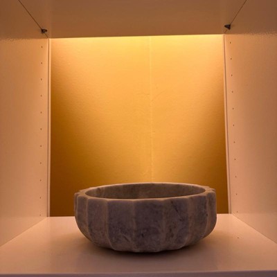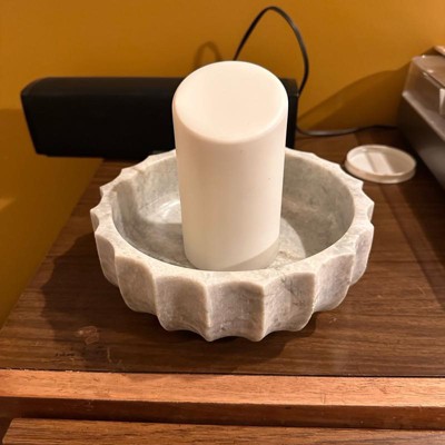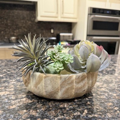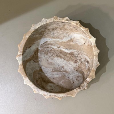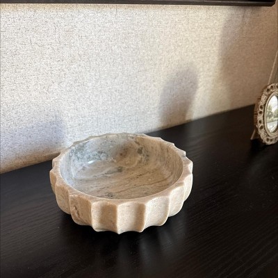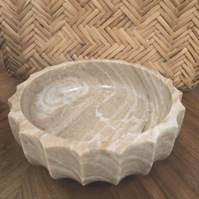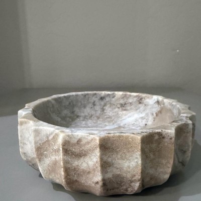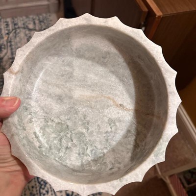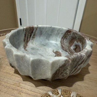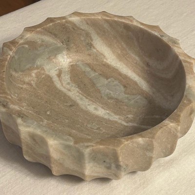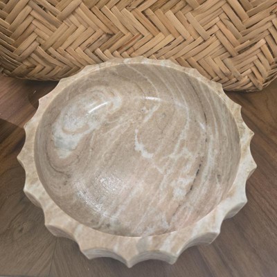 [This review was collected as part of a promotion.] I LOVE everything about this bowl! It is a great size for storing things or just for decorating. Because of its neutral coloring, you can use it basically anywhere. It is obviously very heavy but it very delicately beautiful. The fluted design gives it gorgeous lines and being made of natural stone, every piece is uniquely different. The coloring can vary greatly, so I would recommend picking yours out in person. There’s nothing I don’t like!
