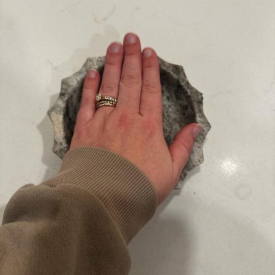 [This review was collected as part of a promotion.] This “catch all” dish isn’t exactly what I’d call a catch all, as you can see from my photos it is SMALL. Smaller than the size of my hand! One pair of AirPods and a set of keys would take up the entire tray. However, the tray itself is beautiful, unique, and extremely heavy. So even with the capacity limitation, I am pleased!