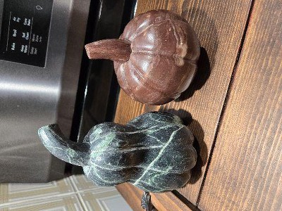 I got this green pumpkin and the reddish-purple one. I love them! They are so heavy and just beautiful. I do love things in threes, so I wish they had a smaller option in an orange/brown or white color, but the two of them together still look great. I got these on a half-off sale so for about $11, I'm very satisfied.