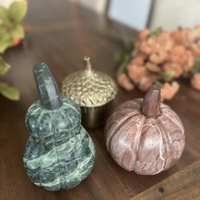 Add a seasonal touch to your home decor with this Marble Pumpkin from Threshold™ designed with Studio McGee. Made of marble, this decorative pumpkin figurine is designed in a green hue with shades of light green for eye-catching flair. You can place this 9-inch figurine on any tabletop, mantel, or entryway table or pair it with other pumpkin accent pieces for a cohesive, autumn-themed look.