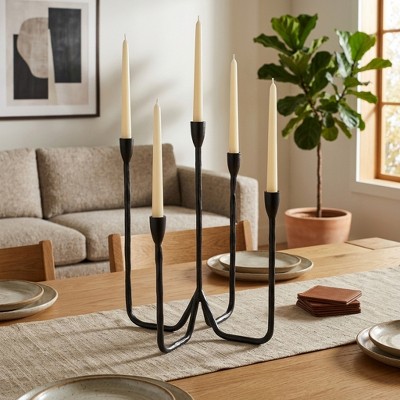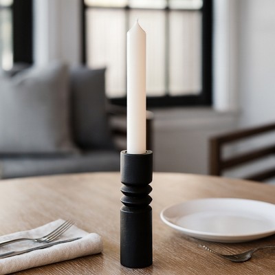 Storied Home Marble Wave Double Taper Candle Holder, Black