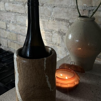 The marble is different on each item. Better to buy in person otherwise you may get one with less of a nicer marble pattern. Very solid though & nice overall!
