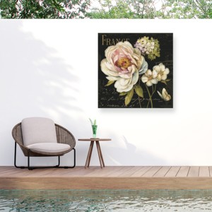 This ready to hang, gallery-wrapped art piece features flowers in front of a black background.Lisa Audit loves the art of decoration, and she uses oil paints, acrylics, and pen and ink to create beautiful pieces of art. She finds inspiration from fine art masters such as Picasso, Manet, Rubens and Cezanna. Lisa lives in Canada with her two teenage daughters, and she creates much of her artwork in a spacious studio inside her home.The Outdoor Canvas Art by Trademark Fine Art is a great way to add a pop of color to your poolside, balcony, backyard, garden, or porch. This all-weather outdoor decor is printed with UV gel inks to prevent fading for years to come. These colorful outdoor pictures for the patio have been digitally reproduced, printed on all-weather artist canvas, stretched, and gallery wrapped on all-season stretcher bars for a clean finish.
