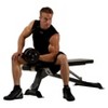Get a full weight-training workout at home with the Marcy Deluxe Utility Bench (SB670). This all-purpose gym includes a 6-position back pad that adjusts for chest, incline, military and decline press positions. There is a 3-position tilting seat pad with high-density, boxed 2-tone upholstery that is constructed from top-grade high-density foam. It has a 3 round and 2x4 heavy-duty steel tube frame construction and a durable powder-coated finish. Tone, train and target upper and lower abdominal muscle groups, burn calories and lose weight with this home gym. It has transport wheels and a handle grip for easy transport and it folds flat for easy storage. Two-year limited warranty.