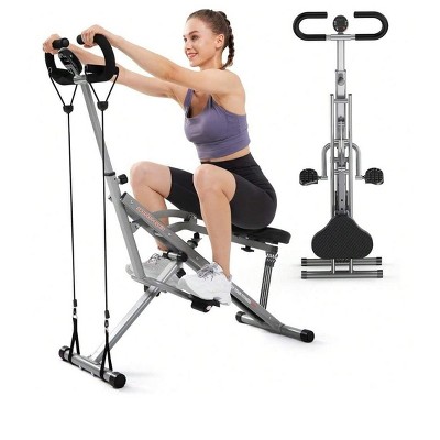 Machine does everything for a complete workout! And 2 people can use it at the same time. No more running around a gym or fitness center to different machines for a workout. This does it all for you. Amazing foot print and engineering design! Has it all on one machine.