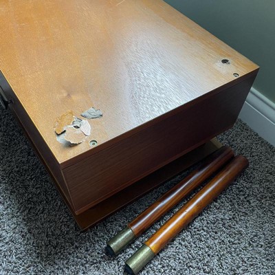 The legs will rip out if you even look at them funny. So disappointed since it truly is a beautiful nightstand.