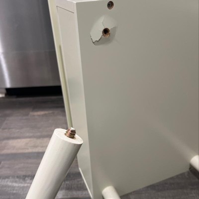 The leg literally fell out of the hole before I could even put the table anywhere in my home! Very cheap table.