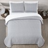 Add casual comfort with a modern flair to your home with this beautiful Nora Collection Reversible Striped Quilt Set by Market & Place. Crafted with a soft and breathable microfiber exterior and cotton/polyester fill, this quilt set keeps you cozy and comfortable all year long. It's classic navy and white striped design with a simple dot pattern on the reverse side is the perfect accent to the top of your bed. This quilt set is machine washable for easy care and long lasting use. Each quilt set comes with one quilt and two shams (one sham for Twin size). Choose from three sizes: Twin: 1 Quilt (90" x 66"), 1 Standard Sham (20" x 26"), Queen: 1 Quilt (90" x 90"), 2 Standard Shams (20" x 26"), King: 1 Quilt (90" x 108"), 2 King Shams (20" x 36")