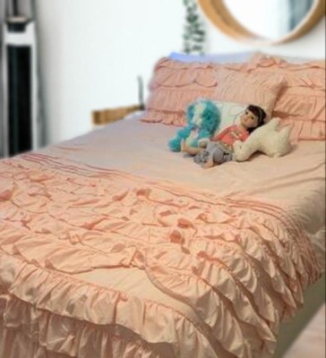- Ruffled comforter set on soft microfiber