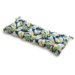 Add a touch of style and comfort to your outdoor bench or swing with this Kensington Garden Outdoor Cushion. Its plush and durable construction makes it ideal for enhancing porch swings or outdoor benches. It comes with string ties to keep securely attached to furniture, and features a circle tack construction to prevent fill from shifting. Each cushion is generously filled with a soft poly-fiber made from 100% recycled, post-consumer plastic bottles for extra comfort and durability, and covered with a UV resistant, 100% polyester outdoor fabric.