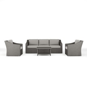 Product Name: Martha Stewart 4pc Outdoor Rattan Patio Conversation Set with All-Weather Cushions - GRY/GRY
