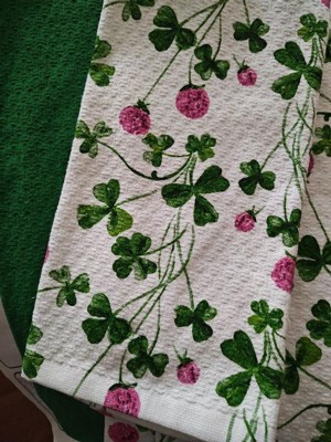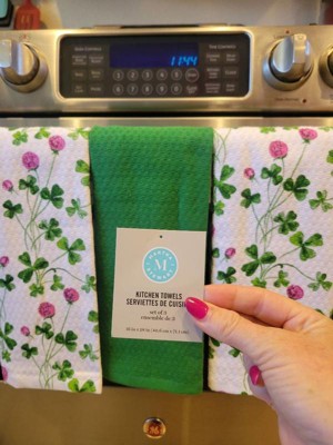 Martha Stewart Clover Meadow Kitchen Towel Set 3-Pack, Absorbent 100% Cotton, St. Patrick's Day, White/Green, 13"x17.5"