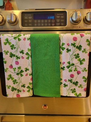 [This review was collected as part of a promotion.] These kitchen towels are impressively absorbent, making dish drying and spill cleanup a breeze. Even after multiple washes, they hold up exceptionally well, maintaining their softness and shape. The St. Patrick's Day design adds a festive touch, featuring charming watercolor clovers alongside a vibrant solid green pattern. A practical and stylish addition to any kitchen. I would recommend these cute absorbent cotton towels to others.