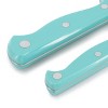 Chop, slice, dice, and mince in style with the Martha Stewart Everyday Keswick 2 piece Santoku knife and sheath set. This set comes with one 7in and one 5in Santoku knife to cover a variety of needs when it comes to prepping your favorite meals. Each knife is constructed with high-carbon stainless steel blades that retain exceptionally sharp edges for smooth use. Ergonomic triple-riveted handles secure the full tang blades for superior comfort and control. Prepare a variety of foods with ease, and when you're done, store safely in your utensil drawer with the included knife blade sheaths.