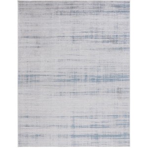 The rug's large rectangular shape serves as a perfect foundation for any room, delivering elegance and versatility. Its serene grey base is elegantly accented with strokes of blue, creating a soothing palette that complements a variety of decor styles. The contemporary pattern exudes a dynamic yet subtle sophistication, making it an ideal centrepiece for both minimalist and statement interiors.