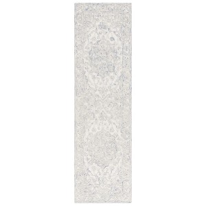 Elevate your home with the timeless elegance of our hand tufted Indian wool runner rug, meticulously crafted in a luxurious ivory and blue color palette. Measuring 2' 3" X 8', this runner rug boasts a graceful pattern that exudes sophistication and a serene charm, making it a perfect accent for any hallway or narrow space in need of a touch of refinement.
