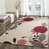 The beauty of artisanal craftsmanship shines through, with each rug being meticulously crafted in India?a country renowned for its rich tradition of rug-making. The ivory background serves as a serene canvas, brought to life with a charming floral pattern that features bold red blossoms accented with gentle pinks and contrasting greys, adding a pop of color and sophistication to any room.