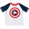 • Officially licensed Marvel Avengers little boys cool and stylish short sleeve swim shirt top and cute and stylish swimming shorts bottoms