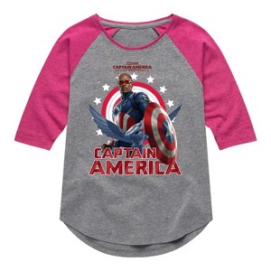 Girls' - Marvel - Captain America Sam Wilson Shirt Tail Raglan Graphic T-shirt - 1 of 3