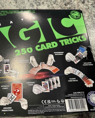 [This review was collected as part of a promotion.] I bought this 250 card trick box for my son who already has several of the other boxes and wanted to learn some new tricks. My son is 11 years old and is able to follow these card tricks easily. The instruction book is illustrated so it makes it easy for him to follow along. There are several different tricks in each deck and several different small decks to chose from. I received an incentive to write this review.