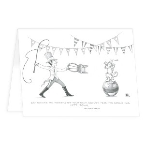 Front reads :Just because the monkey’s off your back doesn’t mean the circus has left town.