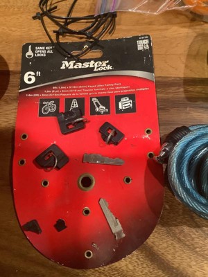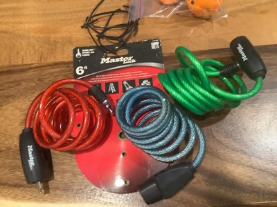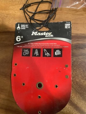 The Master Lock No. 8127TRI Keyed Cable Locks are 6 ft. (1.8m) long and features 5/16 in. (8mm) diameter braided steel for maximum strength and flexibility. The protective vinyl coating protects against scratches. The bright colors simplify identification. The Limited Lifetime Warranty provides peace of mind from a brand you can trust.