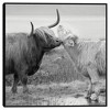 Danita Delimont’s artistic mastery is evident in Highland Courting, where every detail is meticulously rendered to highlight the natural beauty and unique characteristics of these iconic animals. The shaggy coats, expressive eyes, and impressive horns of the highland cows are brought to life with stunning realism, while the verdant field provides a serene backdrop that enhances the overall composition.
