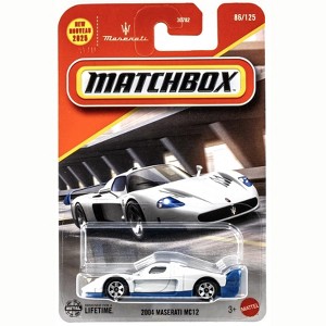 The Matchbox 2004 Maserati MC12 is a highly detailed diecast toy car in white color, scale 1:64. This model is part of the contemporary manufacture line and is recommended for children aged 3 and above. Made by Matchbox in Thailand, this toy vehicle features the iconic Maserati design from the year 2004, staying true to the original car model. Perfect for both boys and girls who love collecting and playing with toy cars, this miniature replica is a great addition to any diecast vehicle collection.