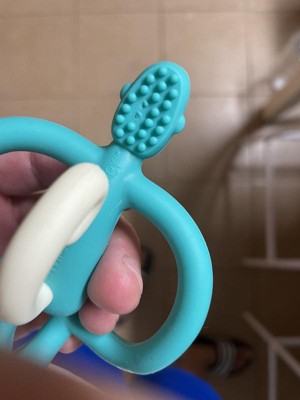My LO instantly gravitated towards this teether. She new where to grab onto it and easily maneuvered the toothbrush end to the back of her mouth for relief. Now, whenever she starts to get fussy, I hand her the monkey and she self-soothes. I love that it's not her fingers and that I can throw it in the dishwasher when it needs to be cleaned.