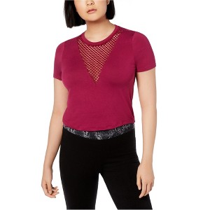 Material Girl Womens Mesh Insert Basic T-Shirt, raspberry, X-Large
