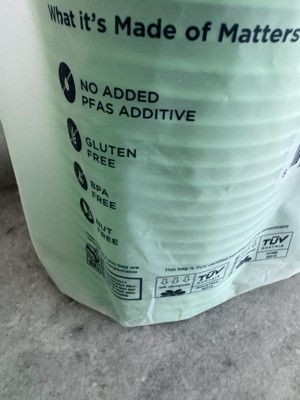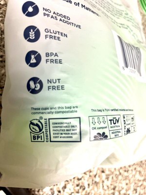 These cups work well as a disposable option for get togethers. Easy to pull apart to grab a new one, they don’t get stuck together like some other cups I’ve used in the past. No plastic-y smell. They’re a light green almost mint green color versus what they appear online which seems more lime green. The reason for four stars is because they’re only commercially compostable, so if you toss them in a plastic garbage bag that ends up in a landfill it defeats the purpose. We don’t have commercial composts convenient to us, but we do compost at home. I think it’d be nice if they were at home compostable. Last, on the back (see image) it says ‘no PFAS added’ does this mean there are PFAS in it but they don’t add additional or that there are no PFAS? I feel like that statement is misleading especially if they contain PFAS. Besides that they’re a good option if you need a cup you can toss after use.