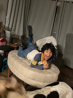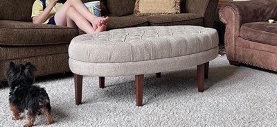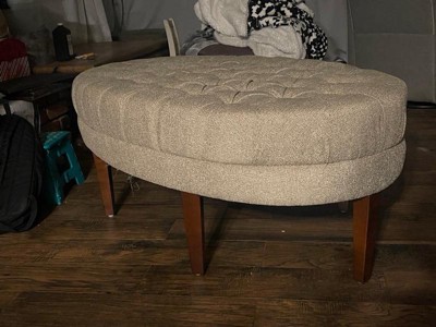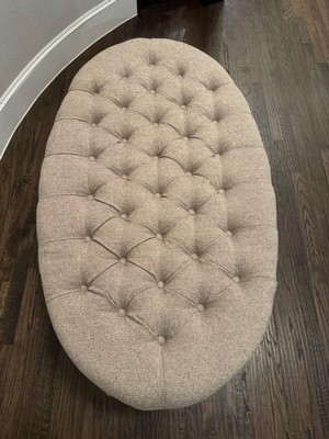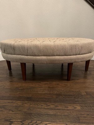 [This review was collected as part of a promotion.] this ottoman to serve double-duty as a coffee table & extra seating. This is very nice, well-made tufts, nice fabric, color as expected. It is quite large, more of a seat for my house but it will be used and admired. - It is perfect! Gorgeous, comfortable, beautiful color grey, Oval shape can up to 250lb of weight capacity and a beautiful focal point of our home. I’m total love this!