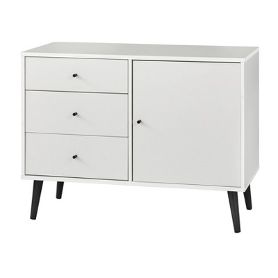 Buylateral Maura Mid Century Modern Buffet Servers White: Mid-Century Modern Credenza, Adjustable Shelves, Pine Frame