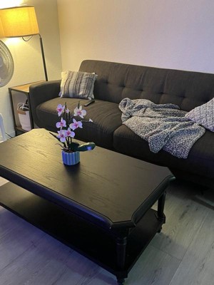 [This review was collected as part of a promotion.] The Maven Lane Pullman Traditional Rectangular Wooden Coffee Table in Antiqued Black is the perfect addition to my living room. I really like the details in design and the antiqued look that has striated lines. The 2 tiered table is a plus for any kind of display! The instructions said it would take about 20 minutes to assemble, but it only took my husband and I about 5 minutes. It was super easy and we really didn’t even need the instructions. The table is well built and doesn’t have any wobble, whatsoever. I am pleased with this coffee table and its functionality. I received a great product thanks to Influenster and Maven Lane! I received this product in exchange for an honest review.