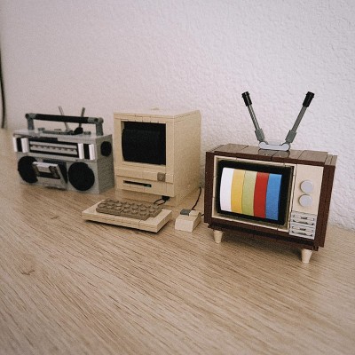 - COLLECT THEM ALL: 6 different buildable retro designs to collect including: Cassette Radio, Retro Camera, Arcade Machine, Telephone, Computer, and Television!