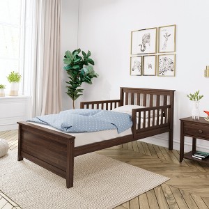Plenty of room for sleep and play? Now that’s a win-win! The Max & Lily Twin Bed with SIngle Guardrail is the perfect combination of functional and fun that both kids and parents love. Bed safely fits standard twin-size mattresses. Solid, knot-free New Zealand pine wood adds strength and stability. All Max & Lily products use a durable, low VOC finish. Flush, color-matched hardware gives this twin bed a clean, modern look. Single guardrail provides extra sleep security. Instructions and required hardware are included. With solid plywood slats and a metal support bar, this sleeping surface can support 400 pounds of resting weight. 2+ adults makes assembly simple and easy. Please note that while add-on guardrails rails can help restrict access and give a sense of protection, they do not prevent all accidents or injuries. Only for use on bottom bunk/bed. Must be attached to the bedpost. Do NOT use an add-on guardrail in place of or to extend the height of the guardrails provided with your Max & Lily bunk or loft bed. Guardrails are for ages 36 months and older. This bed meets or exceeds Federal safety standards for kids furniture.When it’s time for play, this twin bed’s design frees up plenty of space for play. The Twin Bed with Single Guardrail from Max & Lily offers exceptional quality and affordability that kids and their parents will enjoy for years to come. Max & Lily is a member of the Maxwood family of brands - the kids furniture experts bringing a tradition of superior quality, safety and fun!