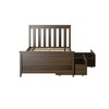 - Drawers roll on casters and are designed to overlap the bed rail, to prevent them from sliding under