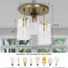 This 11.5" wide fixture features a compact Gold metal canopy paired with 3 cylindrical glass shades, each housing a dimmable E12 bulb (60W max per bulb). The clear glass outer layer and frosted inner diffuser soften light output, reducing glare while adding a touch of sophistication to any space: use it as a bedroom ceiling light for cozy evenings, a living room semi-flush mount for ambient warmth, or a hallway ceiling fixture for welcoming entryway illumination.