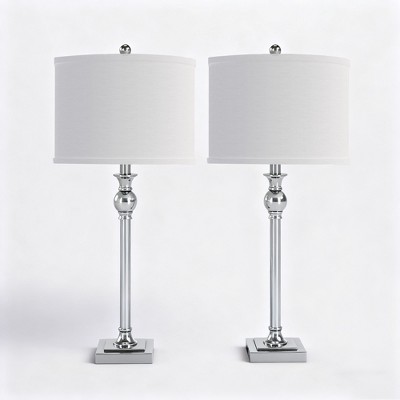 Elevate your home decor with this set of two classic nickel table lamps, crafted from durable iron and stunning elegant crystal accents. Designed with versatility in mind, these lamps serve as perfect desk lamps for your office, cozy table lamps for your living room, or stylish bedside lamps for your chic, charming, cozy bedroom.