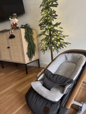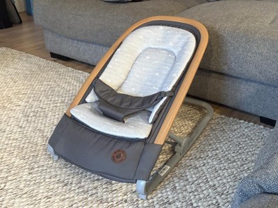 [This review was collected as part of a promotion.] We received the Maxi-Cosi Kori Rocker to try as part of the Stellar Product Testing Panel and we absolutely love it! The woodgrain look is so modern and fits in beautifully with our furniture, unlike many other baby items. I especially loved that it has small legs that stabilize it, allowing me to move my little guy to higher surfaces like the kitchen island while prepping dinner or the dining room table while helping my daughter with homework.He loves to rock and move, so the fact that this rocker is a two-in-one and also rocks was incredibly helpful when multitasking. I could gently rock him with my foot while folding laundry or getting ready in the morning. The pad inside is very cushiony, and my little guy seemed extremely comfortable. It also sits deep in the back, so it appeared that more of his bottom was in a seated position and his weight was more evenly distributed throughout the seat.We had another rocker prior to this one where it looked like all of his weight was being supported by the buckle between his legs—not very comfortable, in my opinion. The only downside for us is that our little guy is actually quite long (99th percentile), so when we set him in the chair, that comfy cushion compresses and leaves about a 2-3 inch cushionless area at the top of the seat. Since he is so long, about an inch of his head overlaps that area without the cushion. It doesn’t seem to bother him and certainly wouldn’t be an issue for an average-length baby.Even with that, this rocker is still our favorite and gets used often because it’s so easy to transport. We traveled from house to house over Christmas, and this rocker folds flat with the push of a button, making it easy to fit in the car and convenient to carry. It’s also very lightweight, so I was able to juggle carrying it, a diaper bag, and the car seat while my husband carried all the presents to the car.It has multiple recline positions as well, which is amazing because our little man napped in it (with supervision) while visiting relatives, and he could also sit up and see what was going on when he was awake and our arms needed a break. We would definitely recommend this rocker to any new parent, especially one who is always on the go!