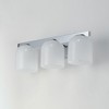 Undulating metalwork curves around modern bell-shaped glass shades fitted within the frame of these bath vanity sconces. Available in either Clear or Marble glass and complimentary finishes of Polished Chrome, Matte Black, or Natural Aged Brass. This collection is a delightful addition to your next project. Material: Steel, Finish Color: Polished Chrome, Width: 21.5", Height: 8", Depth: 7", Height From Outlet Box: 2.5", Backplate Width: 5", Backplate Length: 5", Lamping Type: Incandescent, Number Of Bulbs: 3, Wattage: 60 Watts, Dimmable: Yes, Moisture Rating: Damp Rated