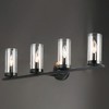 This collection of forever classic designs are available in both Satin Nickle and Black finishes with Clear glass. These fixtures were designed to install easily and priced to work in packages. Mounting Direction: Up Back Plate Height: 4.75 Back Plate Width: 4.75 Dimmable: Yes Shade Included: Yes Shade Dimensions: 6.50 Material: Glass, Finish Color: Black, Height: 8", Length: 30", Depth: 6", Height From Outlet Box: 6", Backplate Width: 4.75", Backplate Length: 4.75", Lamping Type: Incandescent, Number Of Bulbs: 4, Wattage: 60 Watts, Dimmable: Yes, Moisture Rating: Damp Rated